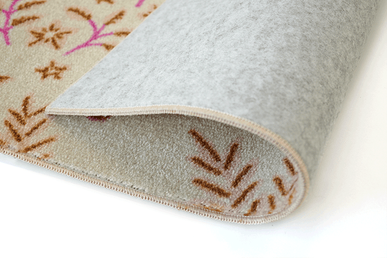 裏面は滑り止め加工で安全。生地のタフト(織り)からオーバーロックの縫製まで、国内工場で実施しています。